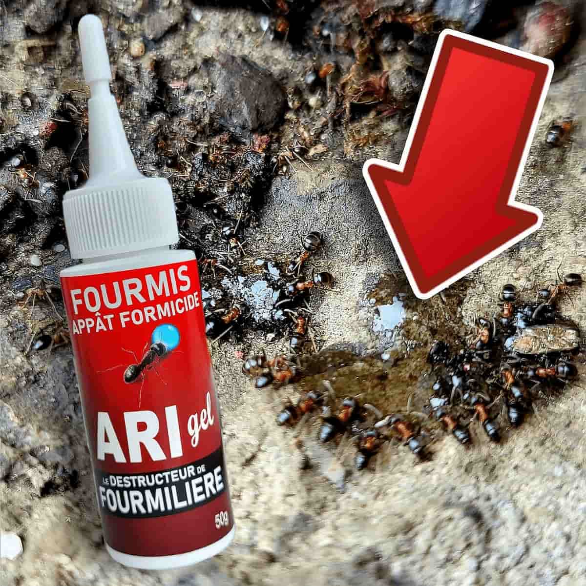 Contrairement à d'autres produits, le ARI GEL détruit toute la fourmilière et non pas les quelques fourmis présentes chez vous : c'est une élimination totale. À l'image de la terre de diatomée ou un produit insecticide en bombe qui permettent uniquement d'éliminer les fourmis ouvrières qui s'y aventurent. Néanmoins, la fourmilière, elle, est encore bien en place. D'autres fourmis ouvrières remplaceront bientôt les autres pour pérenniser la colonie, c'est donc sans fin.