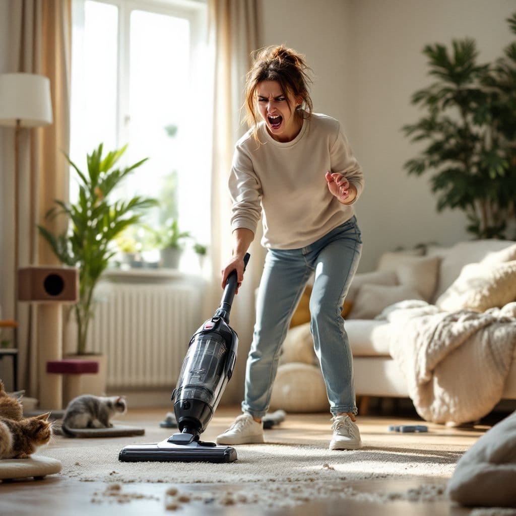 Je vous invite à passer l'aspirateur quotidiennement en insistant bien sur la moquette, les tapis, arbre à chat, les canapés, fauteuils et le bord des plinthes.
